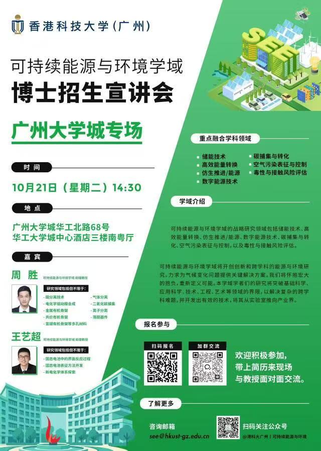 香港科技大学广州|可持续能源与环境学域博士招生宣讲会—广州大学城专场!!!